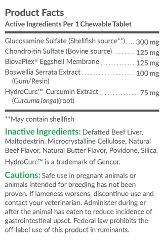 Juve Flex™ is a cutting-edge formula that combines 3 potent natural ingredients into a joint-supporting daily treat your dog will love. Together, these powerful nutrients can help: